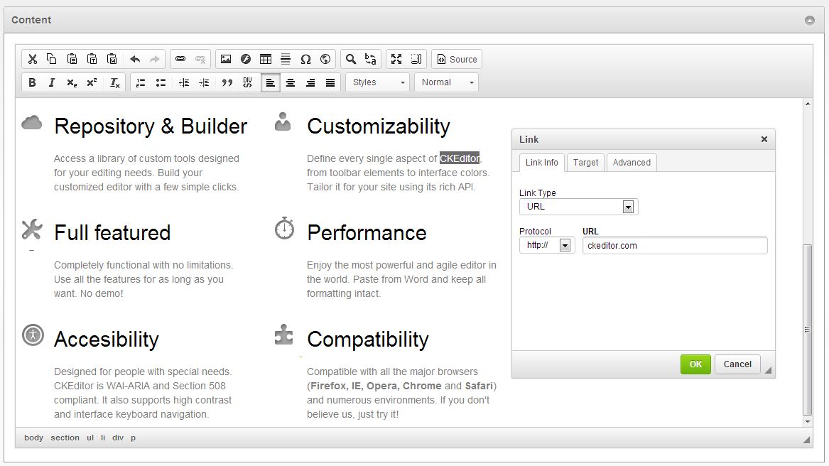 The thorny problem that web-page-embedded, JavaScript-based editors attempt to solve is that web browsers do not sufficiently support their tasks. The critical browser feature supporting web page editing is called contentEditable. Piotrek Koszuliński, the lead developer of CKEditor, wrote a detailed technical explanation of why contentEditable is flawed yet indispensable.22 Some of his points are: